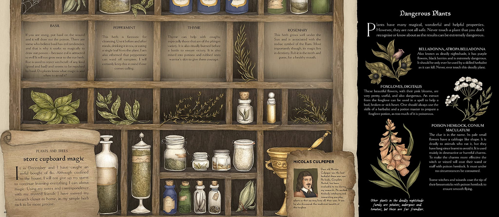 Ta wspaniała pozycja wyposażona w wytłaczaną złotą okładkę obitą tkaniną jest wypełniona kolorowymi szkicami i precyzyjnymi notatkami opisującymi sekretne życie w świecie magii.