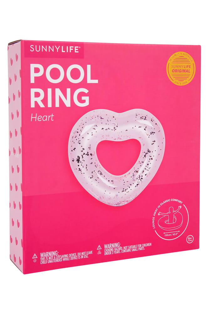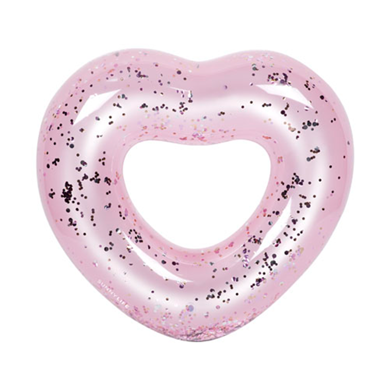Koło dmuchane z brokatem w kształcie serca od Sunnylife Australia.