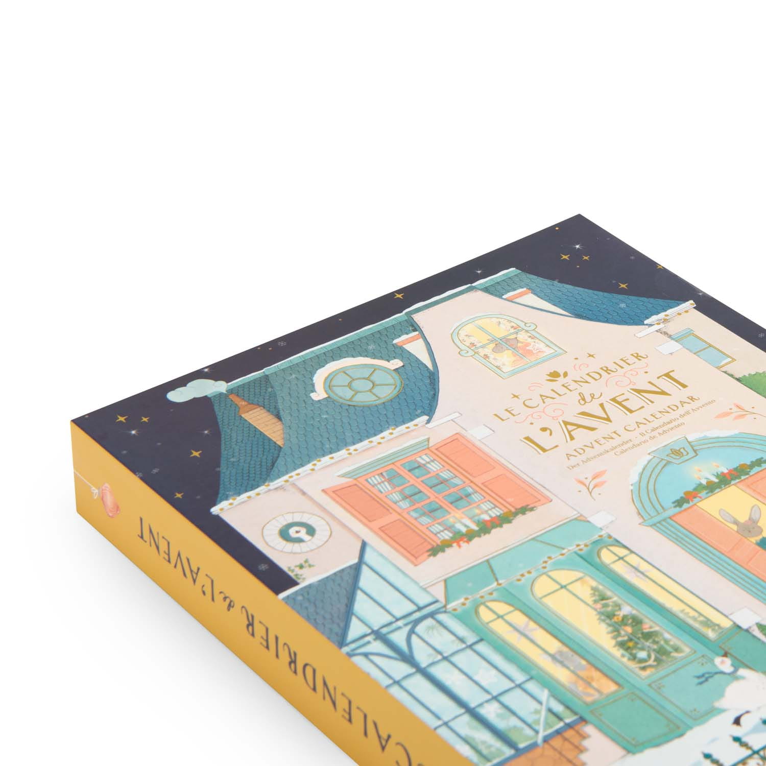 Okładkę kalendarza zdobi domek ozdobiony świątecznymi lampkami, które rozświetlają ciemną grudniową noc. Połacie śniegu pokrywają miasto, a ciepłe wnętrze domku otula bohaterów Małej Szkoły Tańca, którzy krzątają się w salonie, ubierając bożonarodzeniowe drzewko.