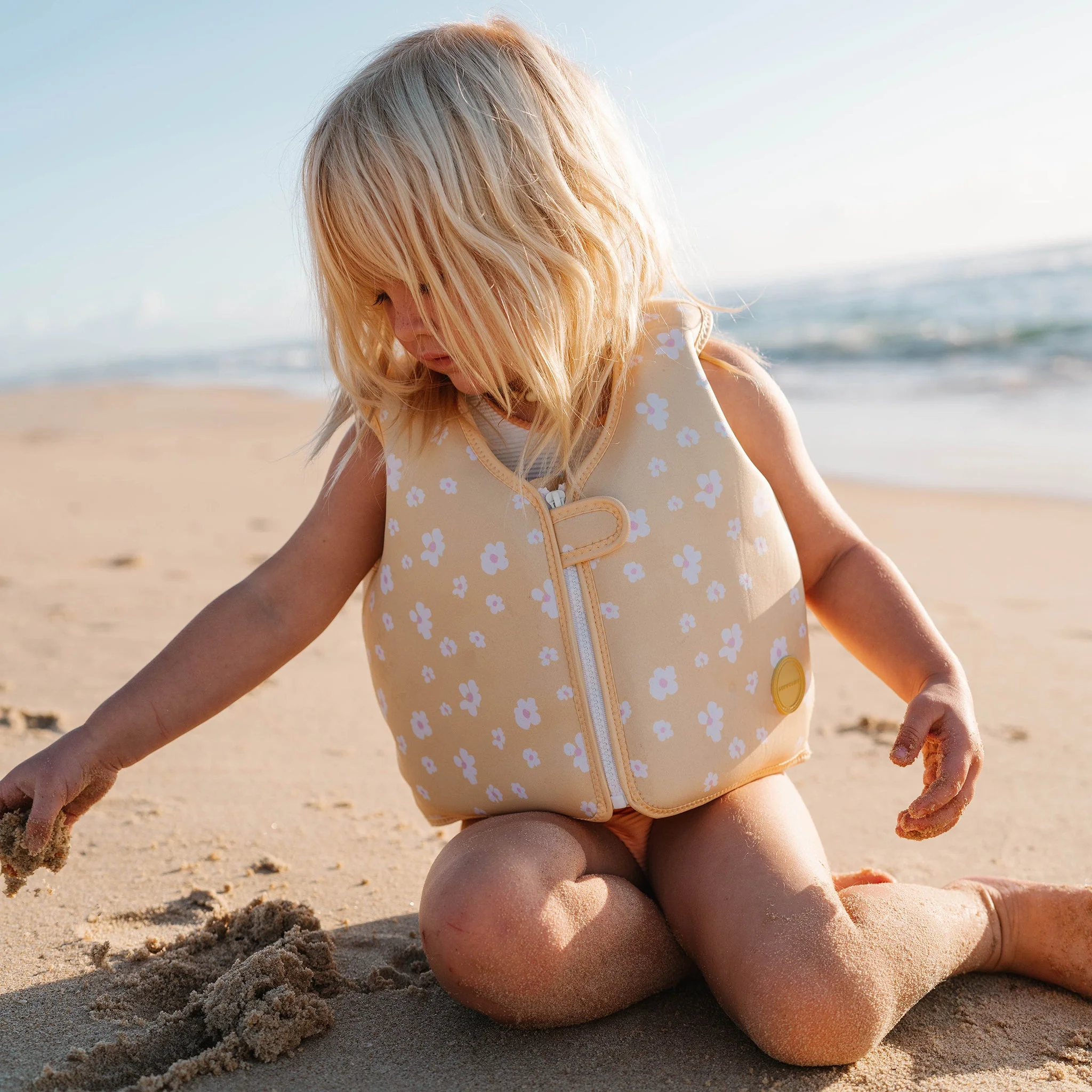 Piankowa kamizelka do pływania, która uniesie dziecko na wodzie i zapewni bardziej komfortową i bezpieczną zabawę.