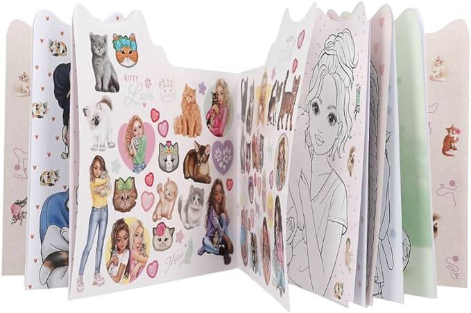 Kolorowanka ze szkicownikiem oraz naklejkami w kocich motywach.