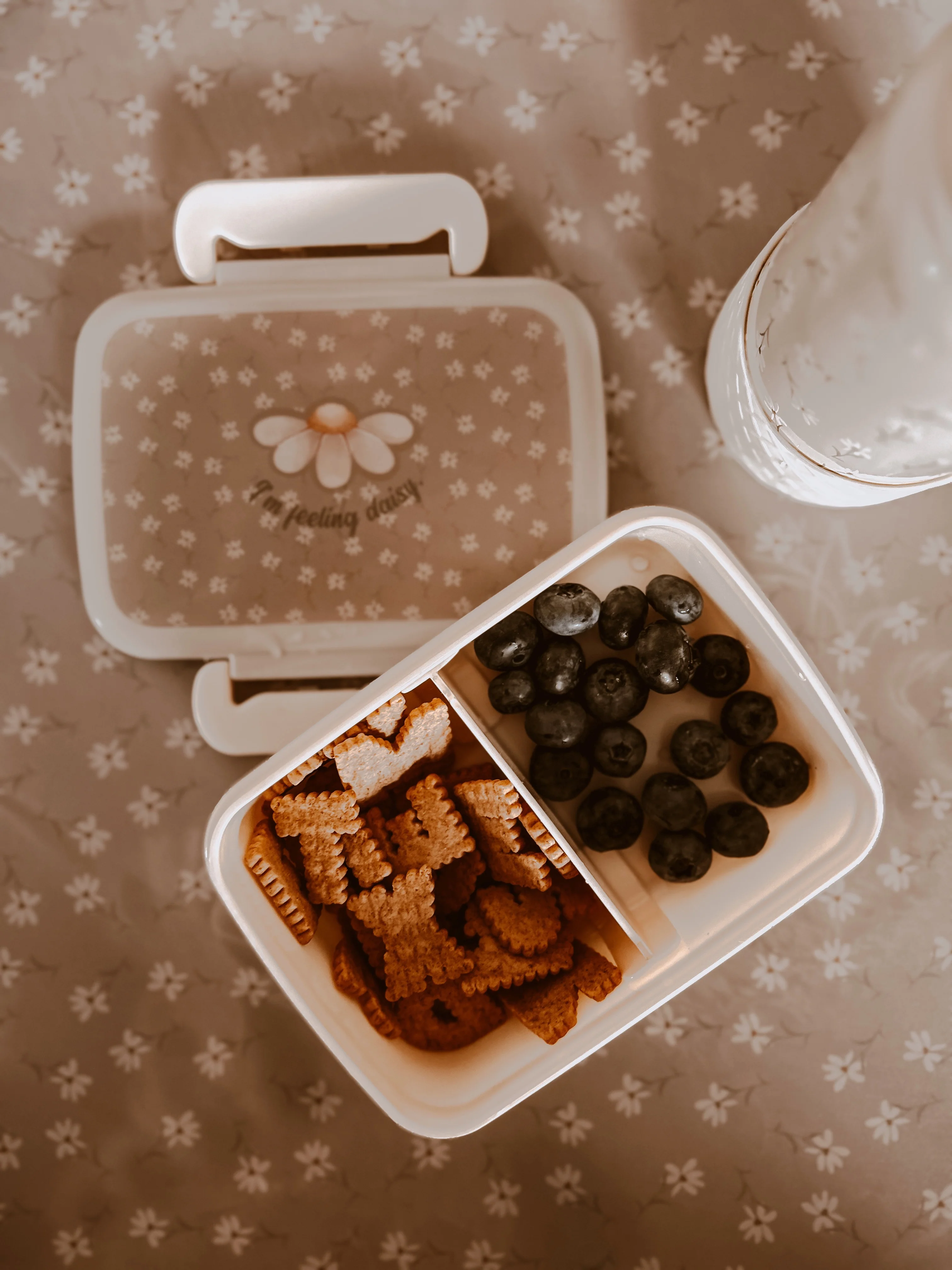 Przyjemny lunchbox na kanapki lub przekąski z separatorem (wyciąganym) w środku.