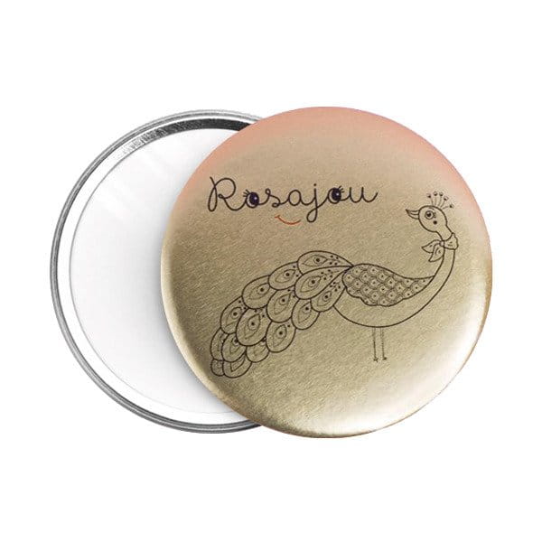 Świetne, podręczne lustereczko w aluminiowej, trwałej obudowie z grafiką pawia. Idealne do schowania do plecaka, torebki, saszetki.