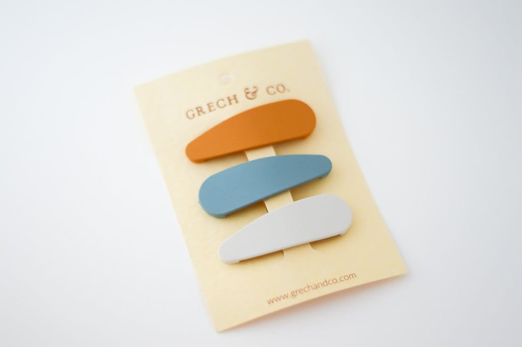 Spinki z malowanego stopu o perfekcyjnej wytrzymałości aby utrzymać zapięte zarówno cienkie, jak i grube, proste czy kręcone włosy od Grech & Co.