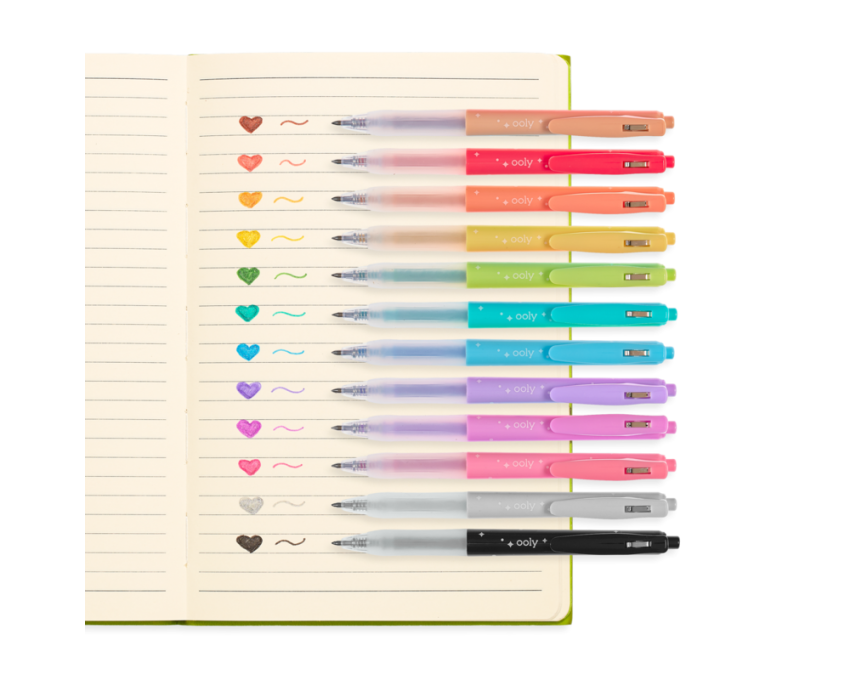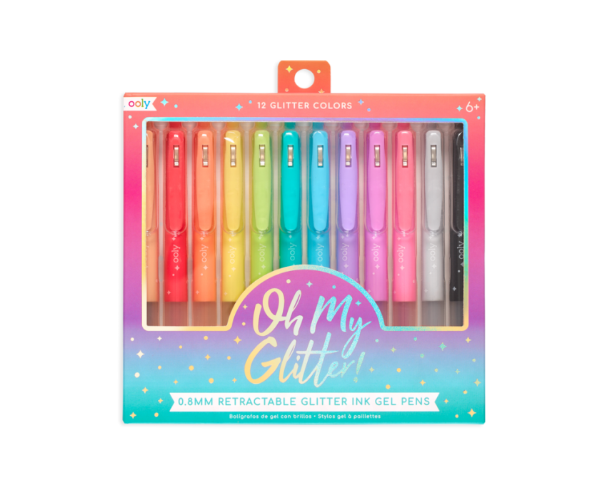 Lśniące barwy kolorowych długopisów żelowych rozjaśniają każdy Twój dzień! Zestaw Oh My Glitter! to 12 cienkopisów z brokatowym tuszem w klikanej obudowie. Każdy ma miękki, wygodny uchwyt oraz „kieszonkowy” klips.