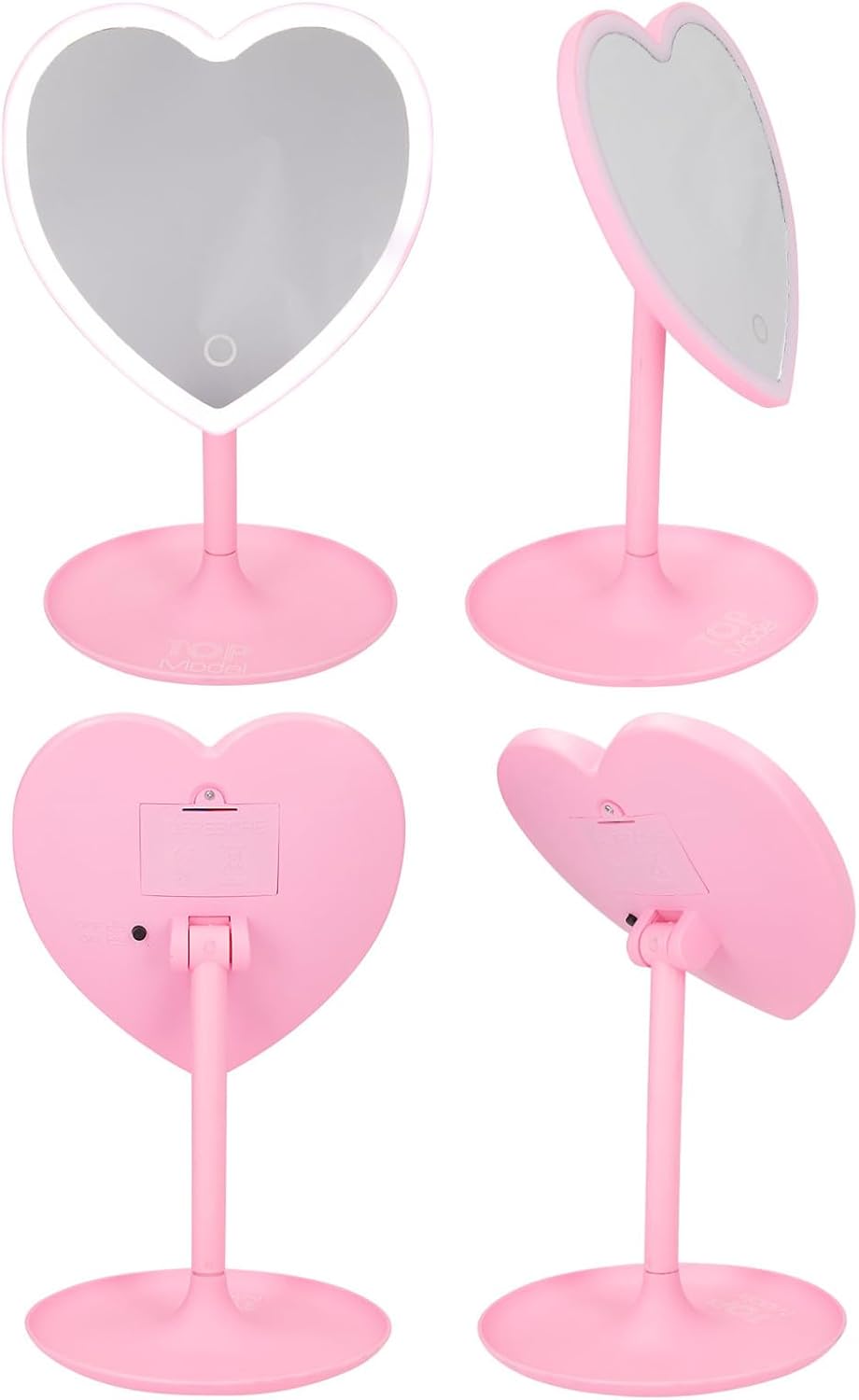 Ładne lustro stojące zapewnia bardzo dobre oświetlenie codziennej rutyny. Lustro ma piękny odcień różu i kształt serca. Praktyczna krawędź LED zapewnia jasne, równomierne światło, które szczególnie dobrze nadaje się do makijażu i pielęgnacji skóry. Do użytkowania potrzebne są 3 baterie AAA, 1,5 V, które są już zawarte w zestawie. Ponadto można łatwo regulować nachylenie lustra serca za pomocą przegubu, dzięki czemu może być używane przez każdego. Stopka nie tylko zapewnia bezpieczne ustawienie, ale dzięki praktycznemu kształtowi nadaje się również jako miejsce do przechowywania biżuterii i innych drobiazgów.
