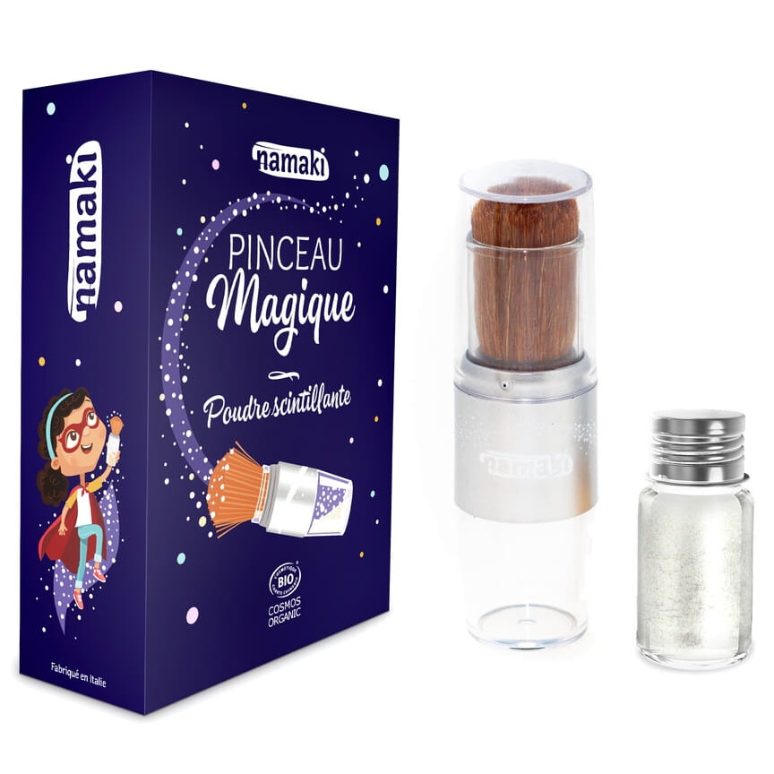 Dzięki magicznemu pędzelkowi i złotemu, migoczącemu, certyfikowanemu, organicznemu proszkowi,dzieci mogą teraz błyszczeć od stóp do głów i wyobrażać sobie magiczne światy!