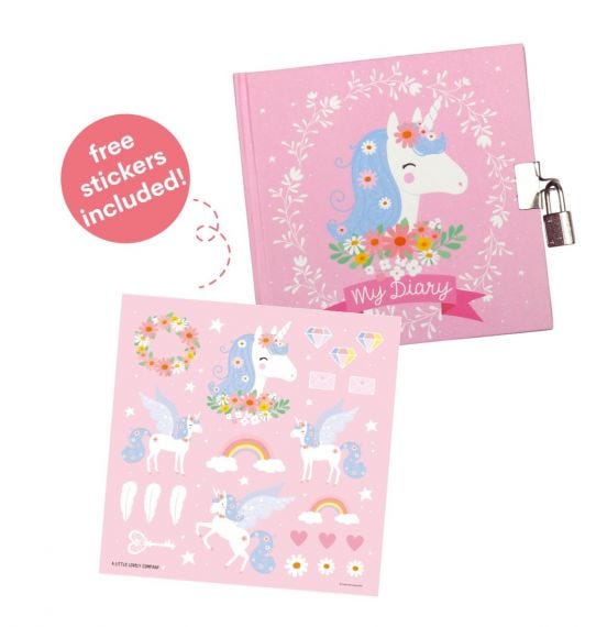 Sekretny pamiętnik zamykany na kłódkę w postaci serduszka. Pamiętnik zawiera 180 strony - idealne na codzienne zapiski lub pamiątkowe wpisy od przyjaciół. Niezbędnik małej dziewczynki ! W zestawie znajduje się arkusz z naklejkami.
