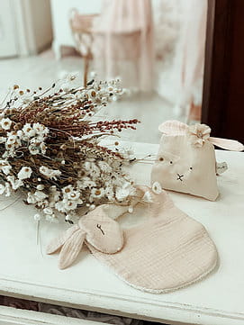 Wyjątkowy śliniaczek dla niemowlaka wykonana z delikatnej, bawełnianej gazy z wizerunkiem uroczego zająca.