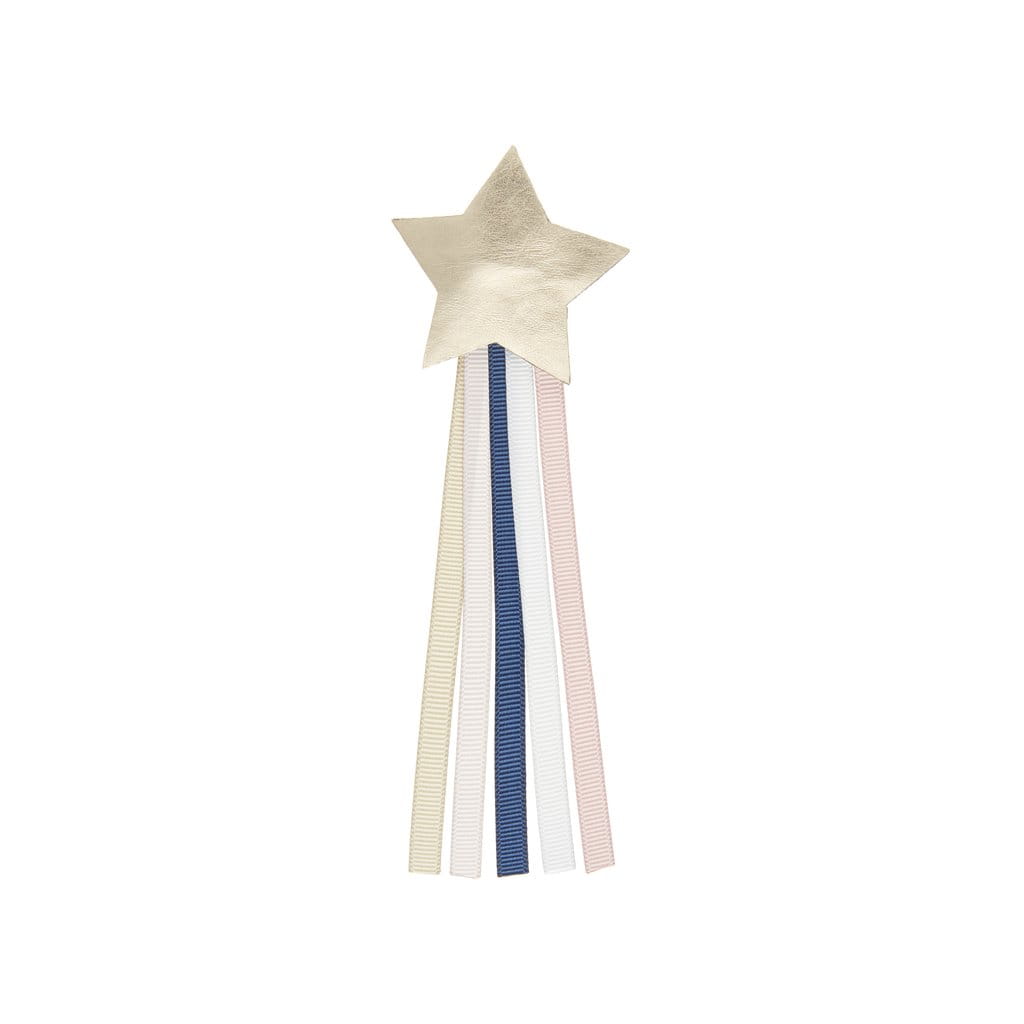 Duża spinka do włosów ze złotą gwiazdką i kolorowymi wstążkami od Mimi&Lula, która pięknie podkreślą każdą fryzurę.