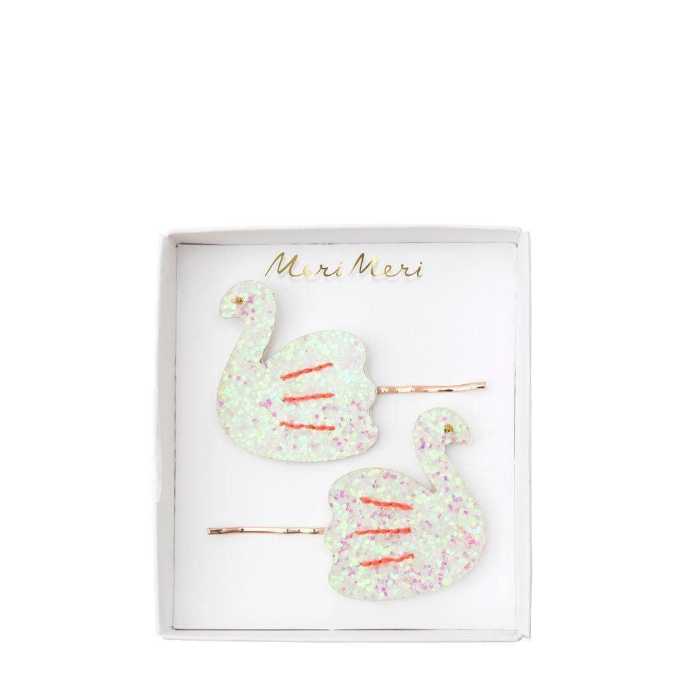 Wsuwki do włosów BROKATOWE ŁABĘDZIE Meri Meri