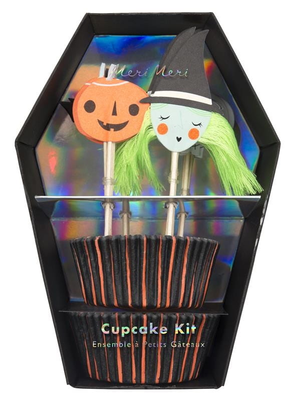 Zestaw do ozdabiania babeczek. Zawiera 24 papilotki i 24 toppery w halloweenowych wzorach.