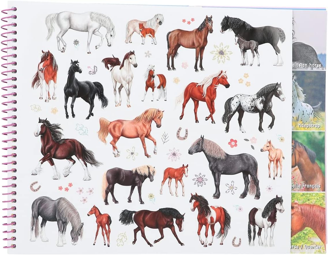 Piękny album z kolorowankami, naklejkami i zdjęciami koni.