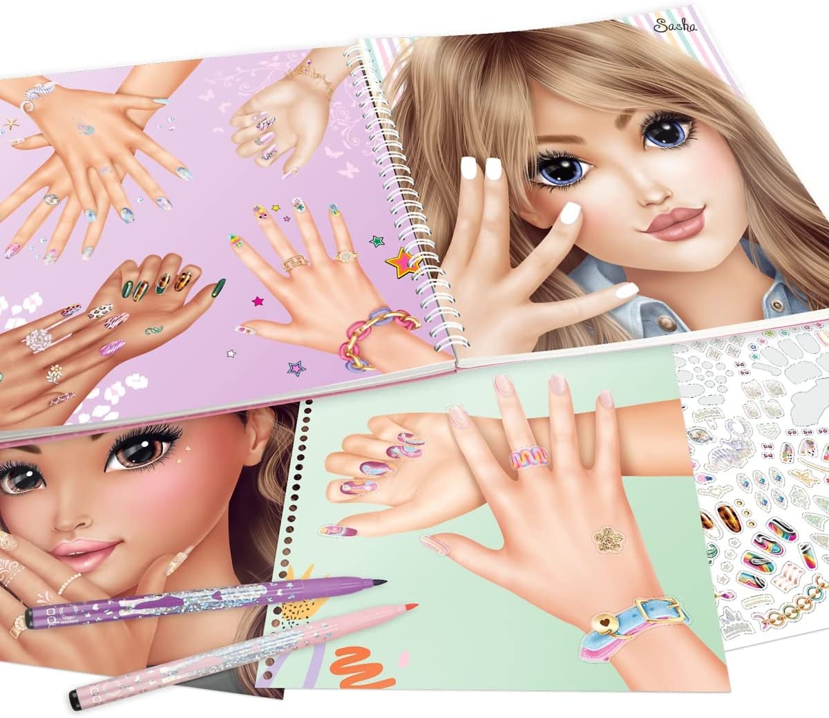 Barwny zestaw artystyczny w którym możemy pobawić się w stylistkę paznokci i dzięki szkicom, naklejkom, szablonom lakierów do paznokci możemy stworzyć unikatowe pomysły na manicure na 40 stronach książeczki.