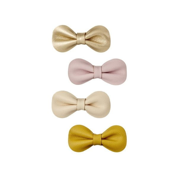 Zestaw 4 skórzanych spinek w kształcie kokardy brytyjskiej firmy Mimi & Lula.