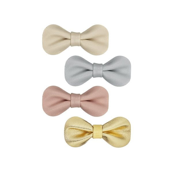 Zestaw 4 skórzanych spinek w kształcie kokardy brytyjskiej firmy Mimi & Lula.