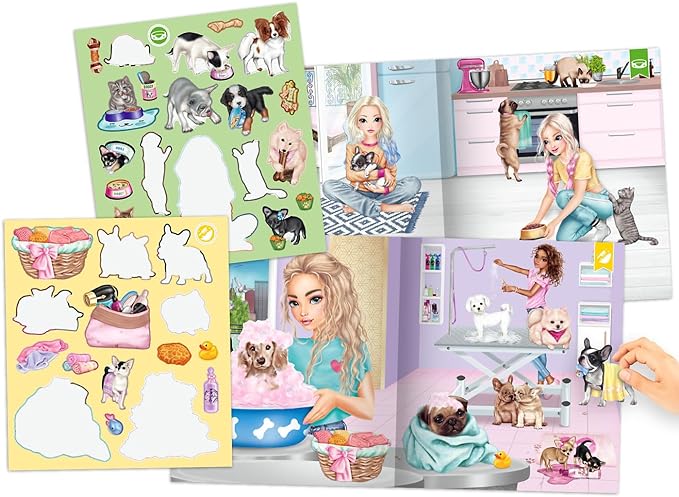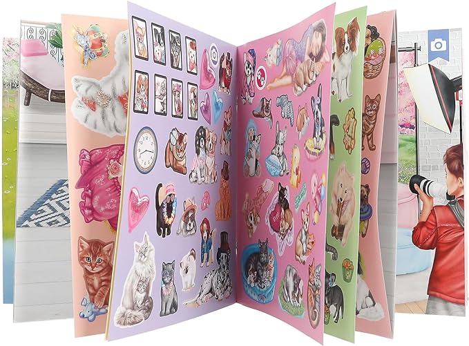 Zawiera 3 podwójne strony z mnóstwem naklejek z psami i kotami