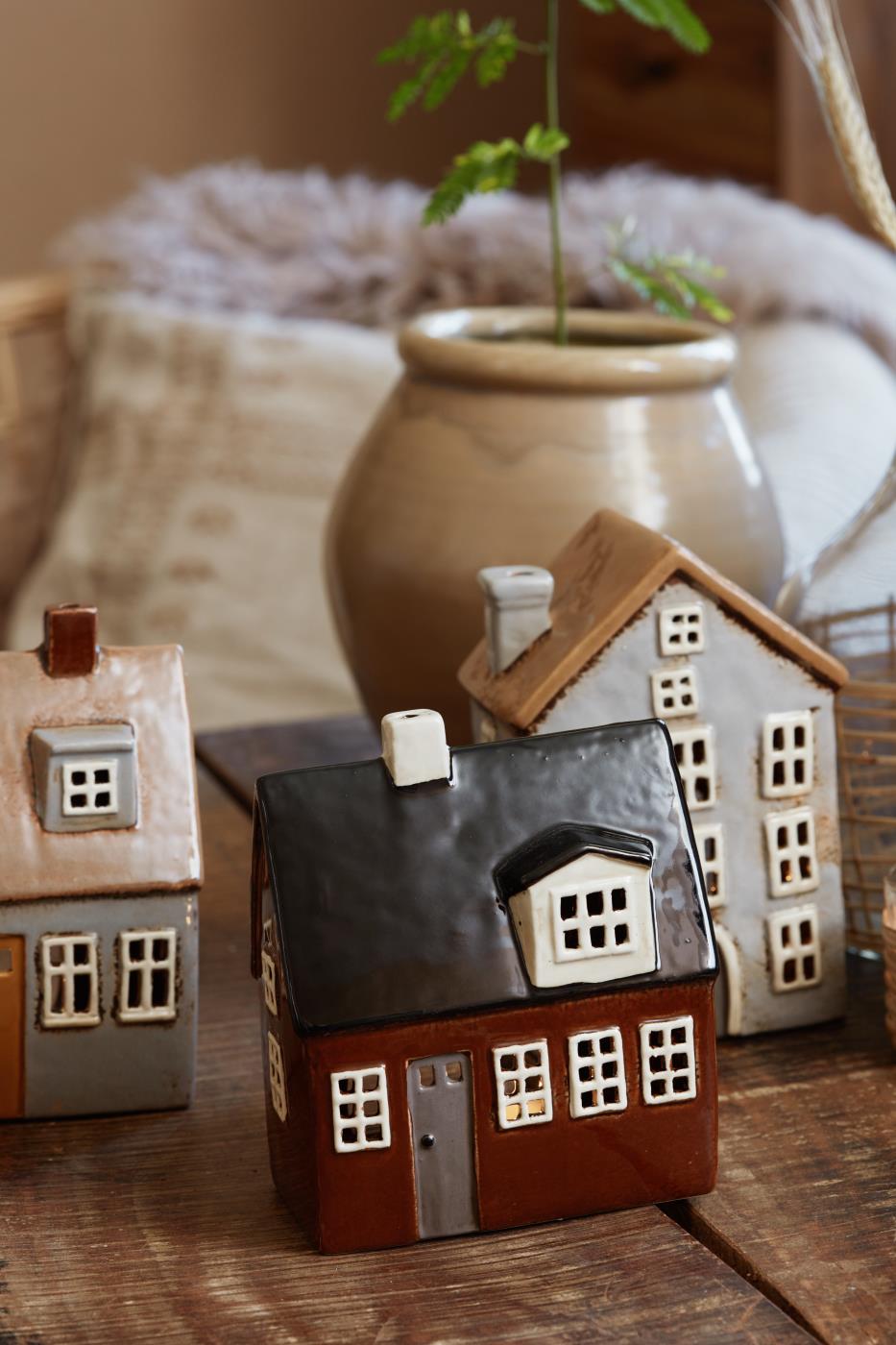 Ceramiczna kamienica od Ib Laursen z miejscem na świeczkę posłuży jako piękna dekoracja oraz latarenka.