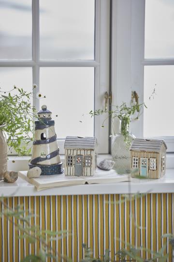 Ceramiczna domek nadmorski Lokken z letniej kolekcji od Ib Laursen z miejscem na świeczkę posłuży jako piękna dekoracja oraz latarenka.