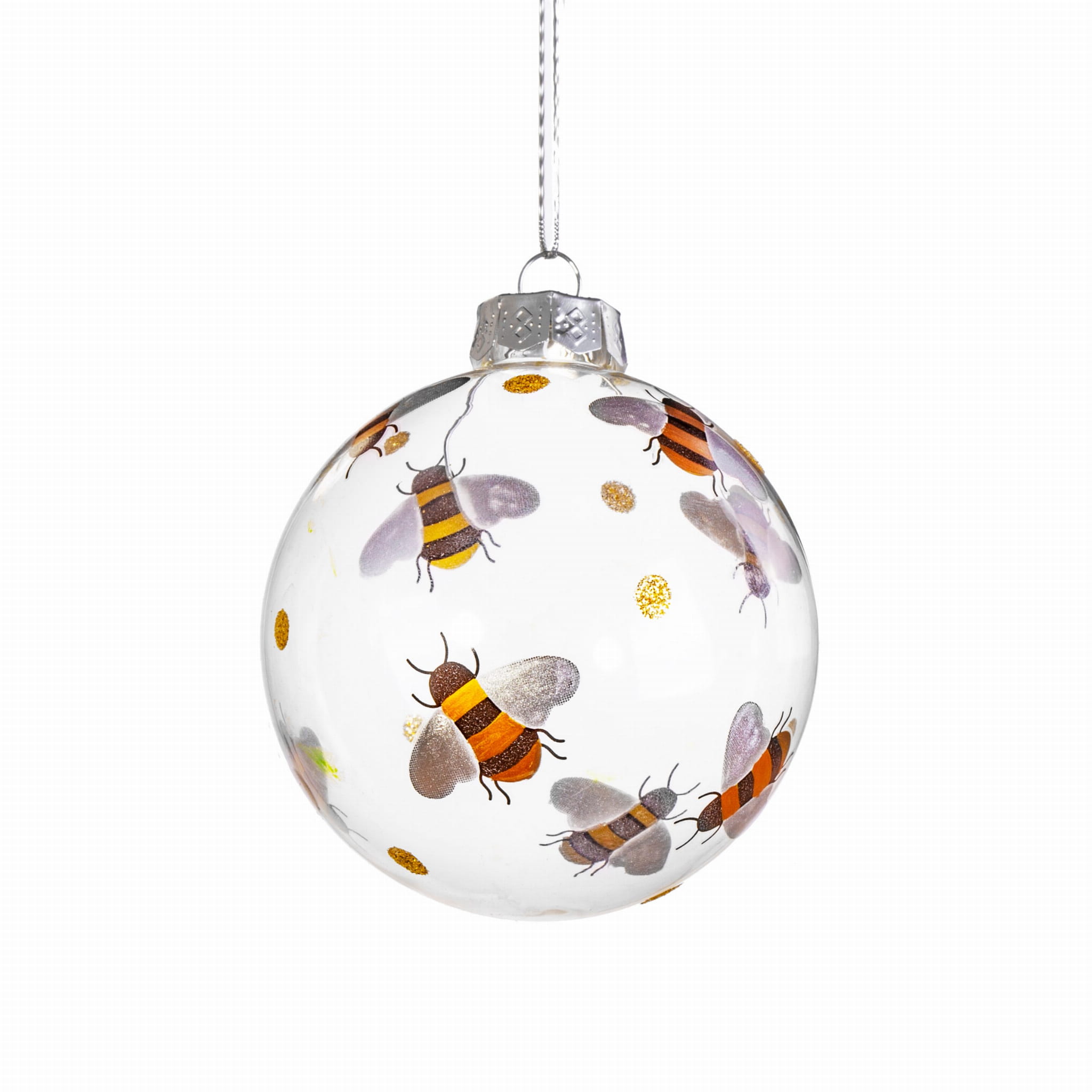 Szklana bombka z ręcznie namalowanymi pszczółkami o średnicy 9 cm