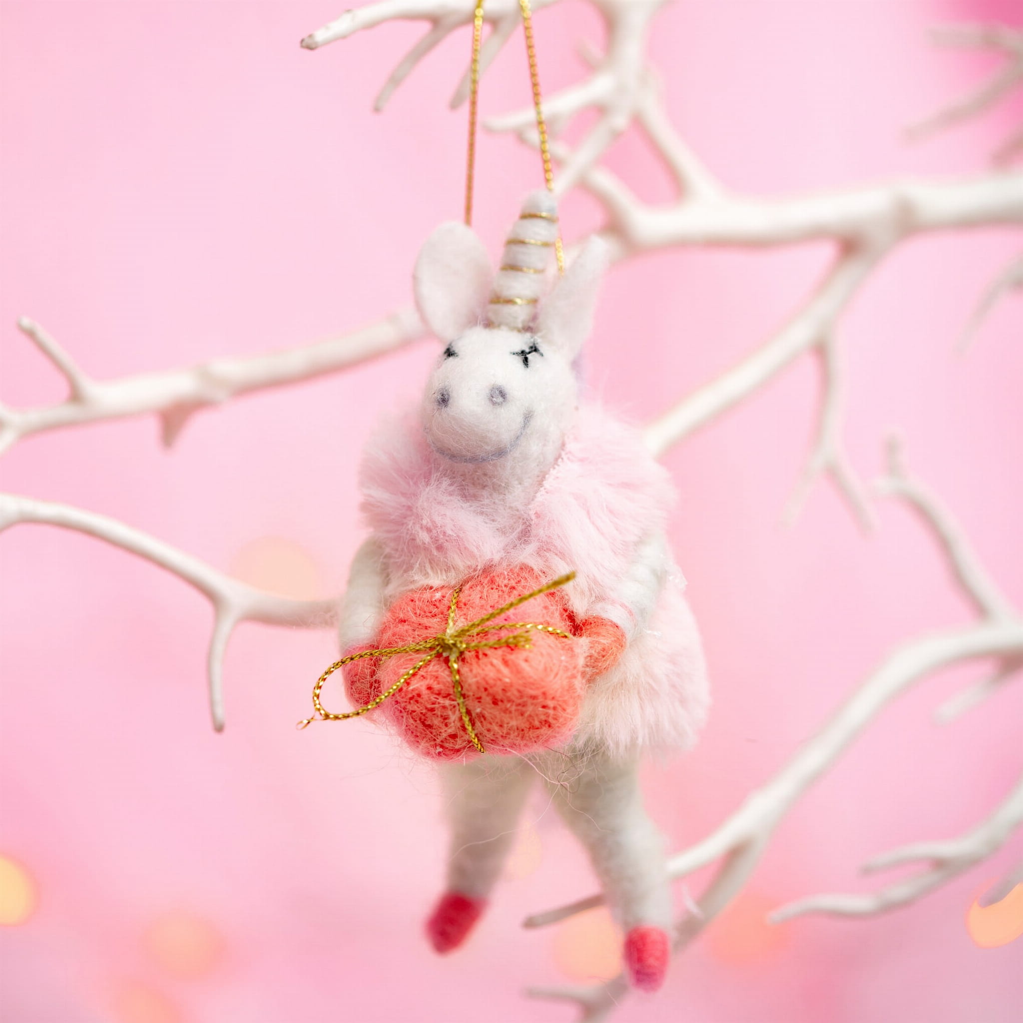 Ręcznie wykonana dekoracja w postaci uroczego jednorożca o wymiarach 13,5 x 11 x 5 cm