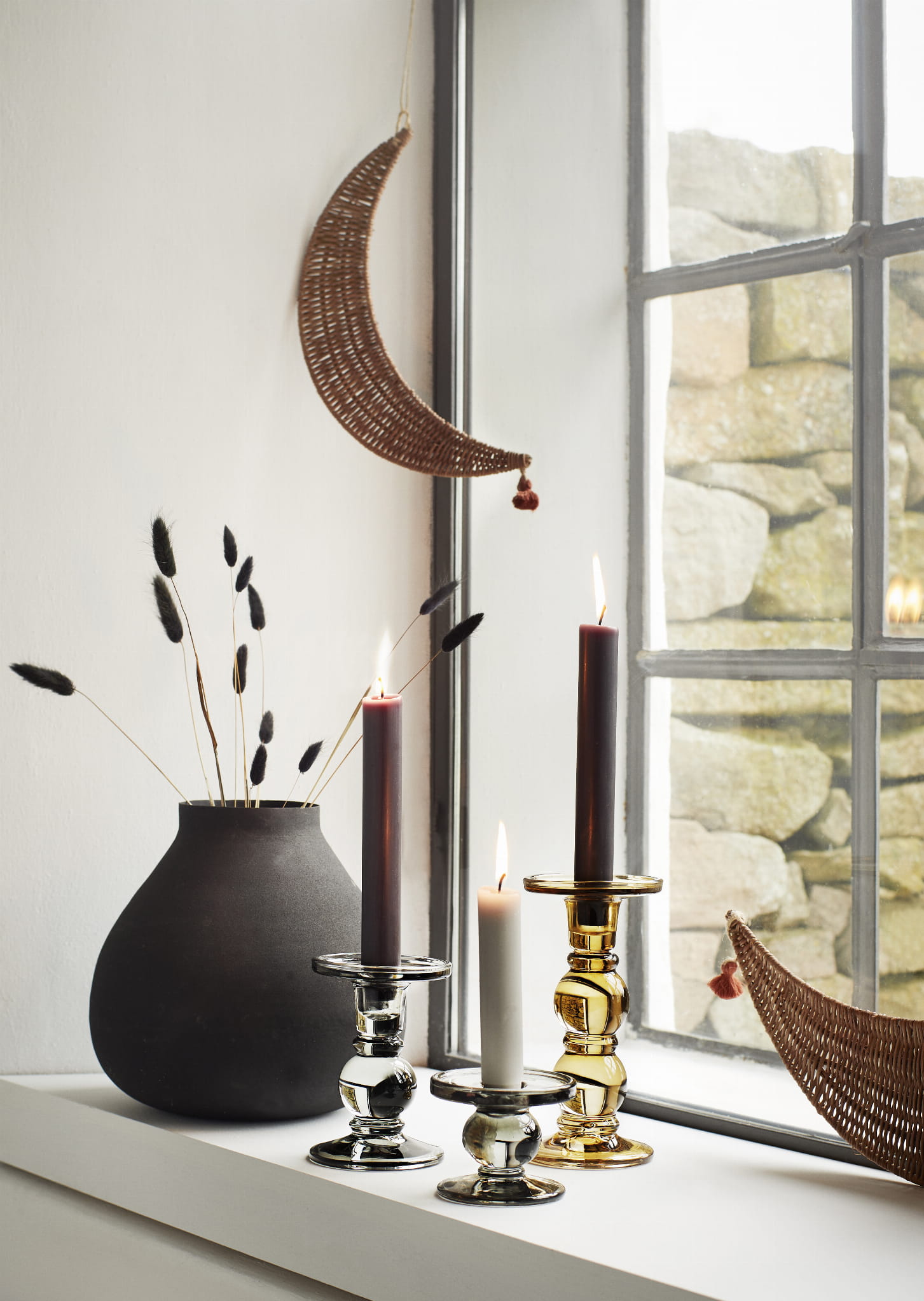 Dwa rattanowe księżyce od Madam Stoltz o wysokości 30 oraz 48 cm.