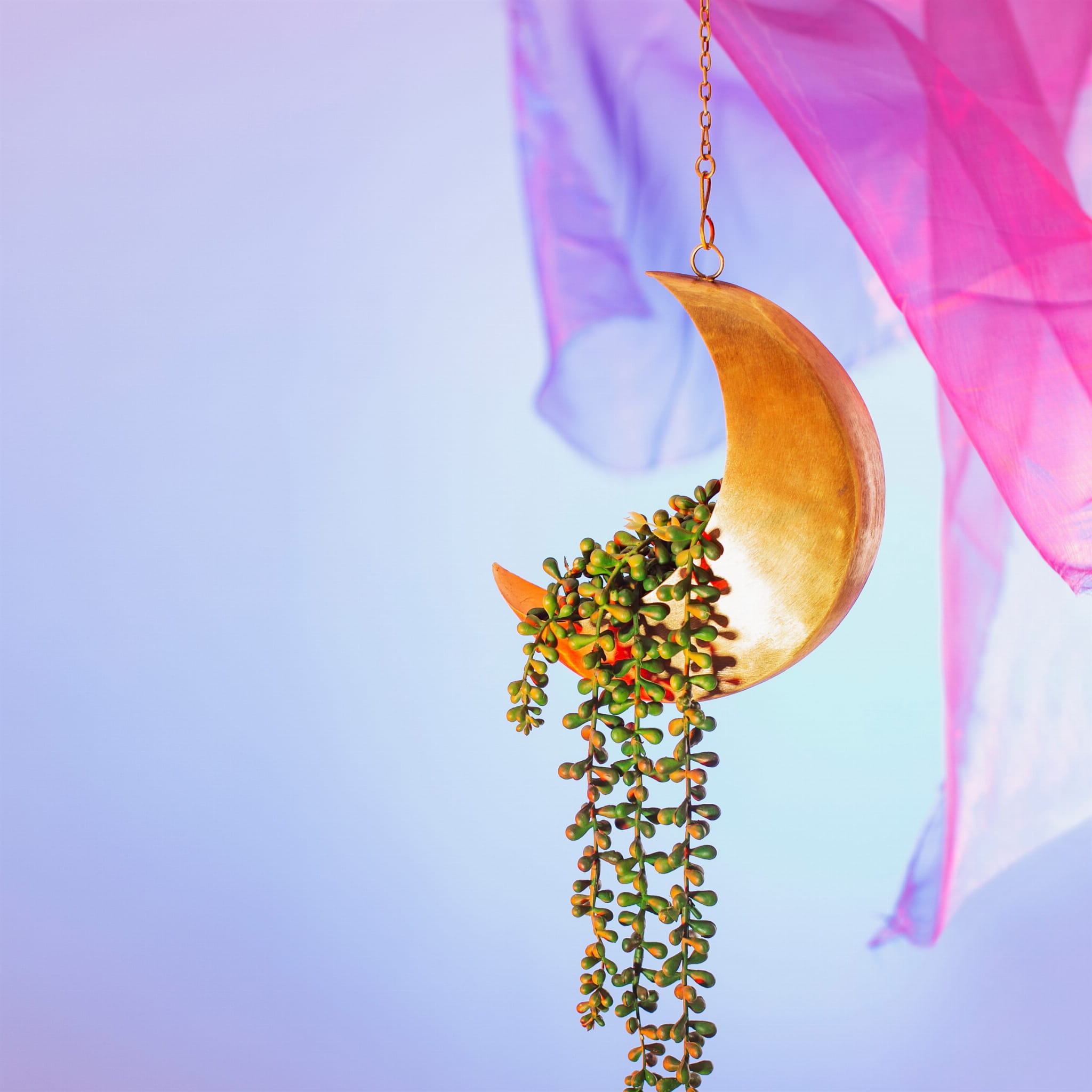 Wyjątkowa wisząca osłonka w kształcie księżyca o wymiarach 61 x 20 x 7 cm.