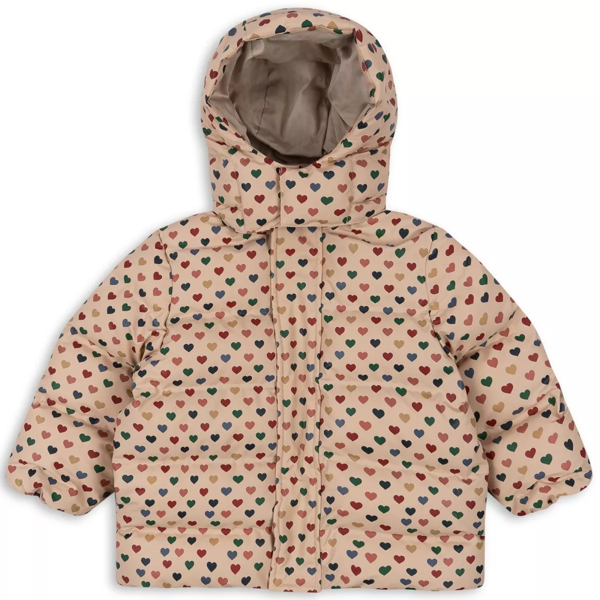 Kurtka zimowa w kolorowe serduszka: wodoodporna i wiatroszczelna od Konges Slojd.