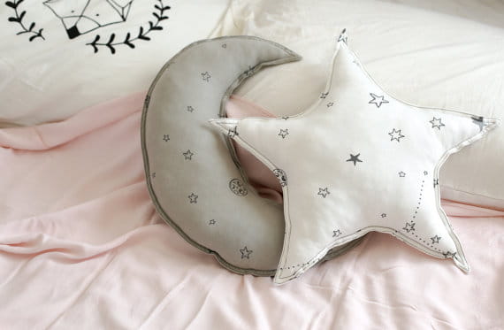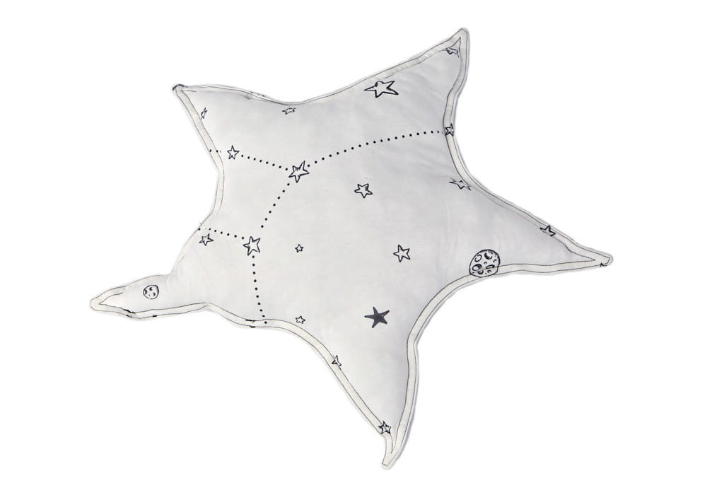 Poduszka ozdobna w kształcie gwiazdki w kolorze białym (wzór "Stars in the galaxy") jest świetnym dopełnieniem zestawu pościelowego od Ndoto.