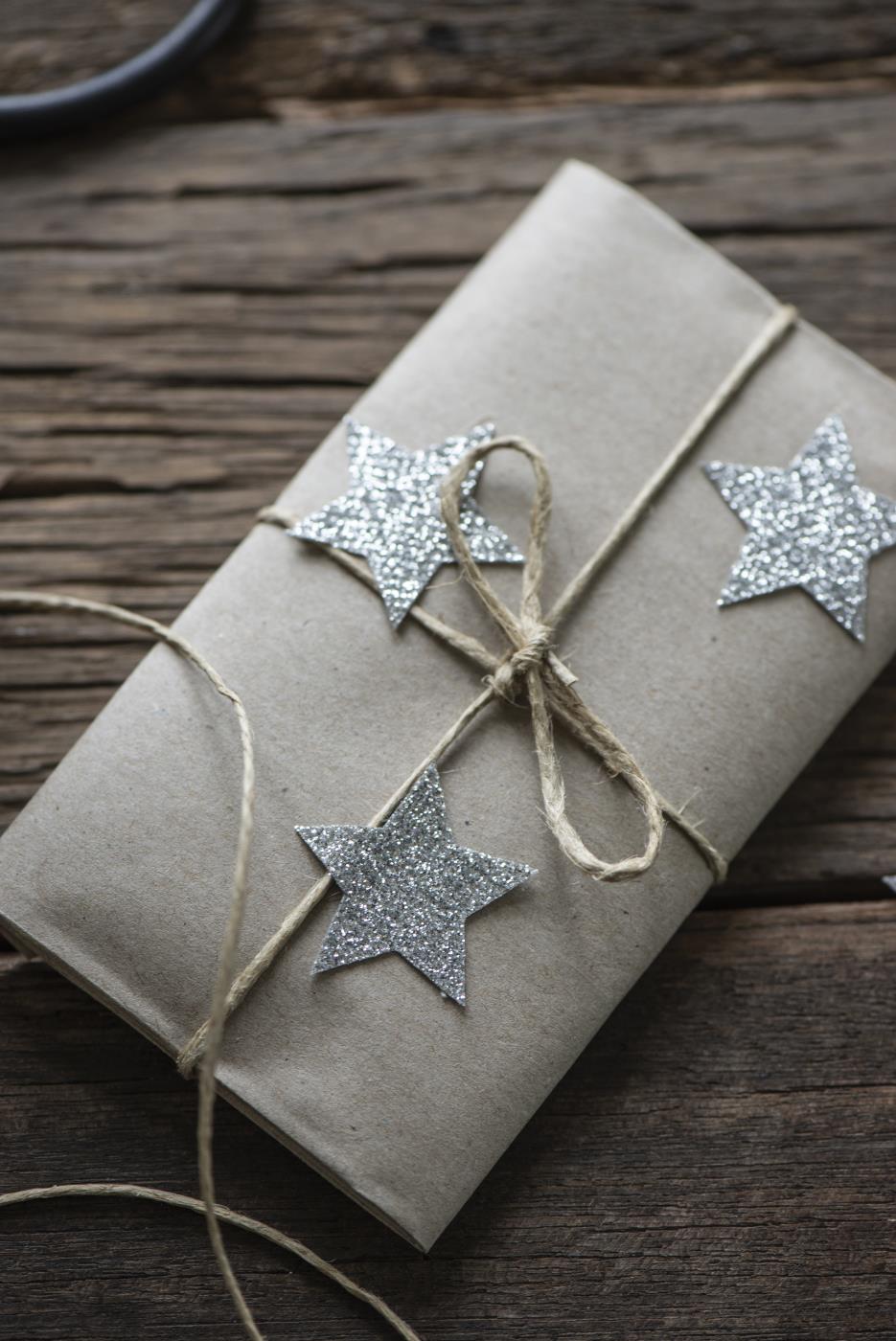 Ozdobne naklejki brokatowe idealne do ozdabiania prezentów od Ib Laursen.